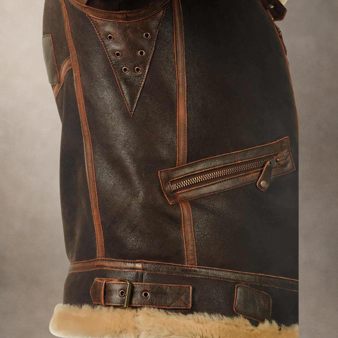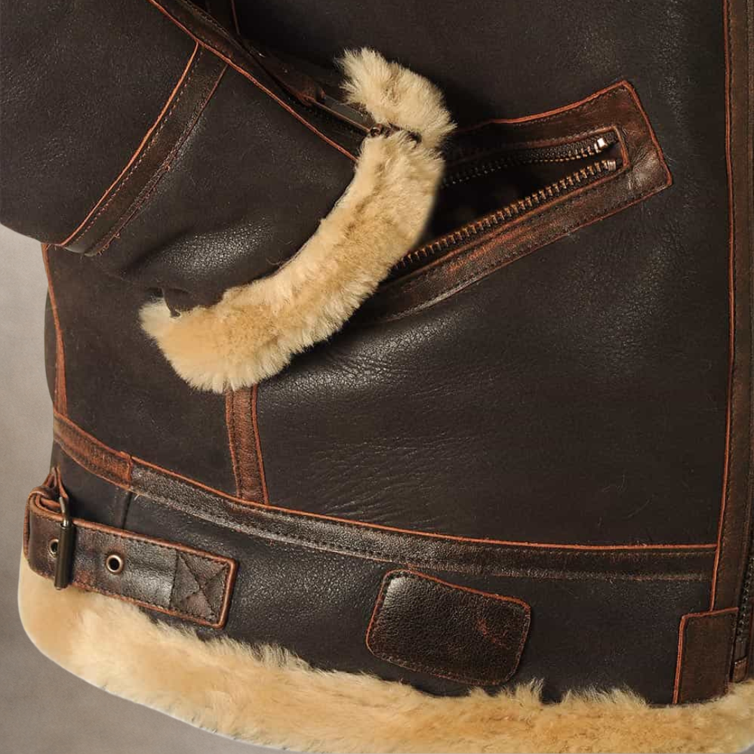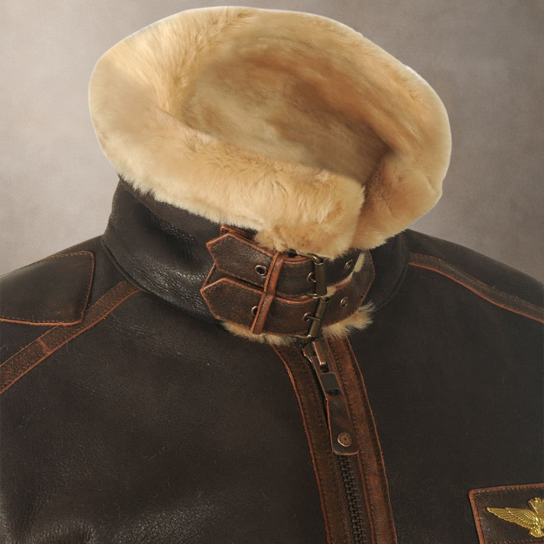 Shearling collar with latch - Helps block wind while adding a bold, classic look.