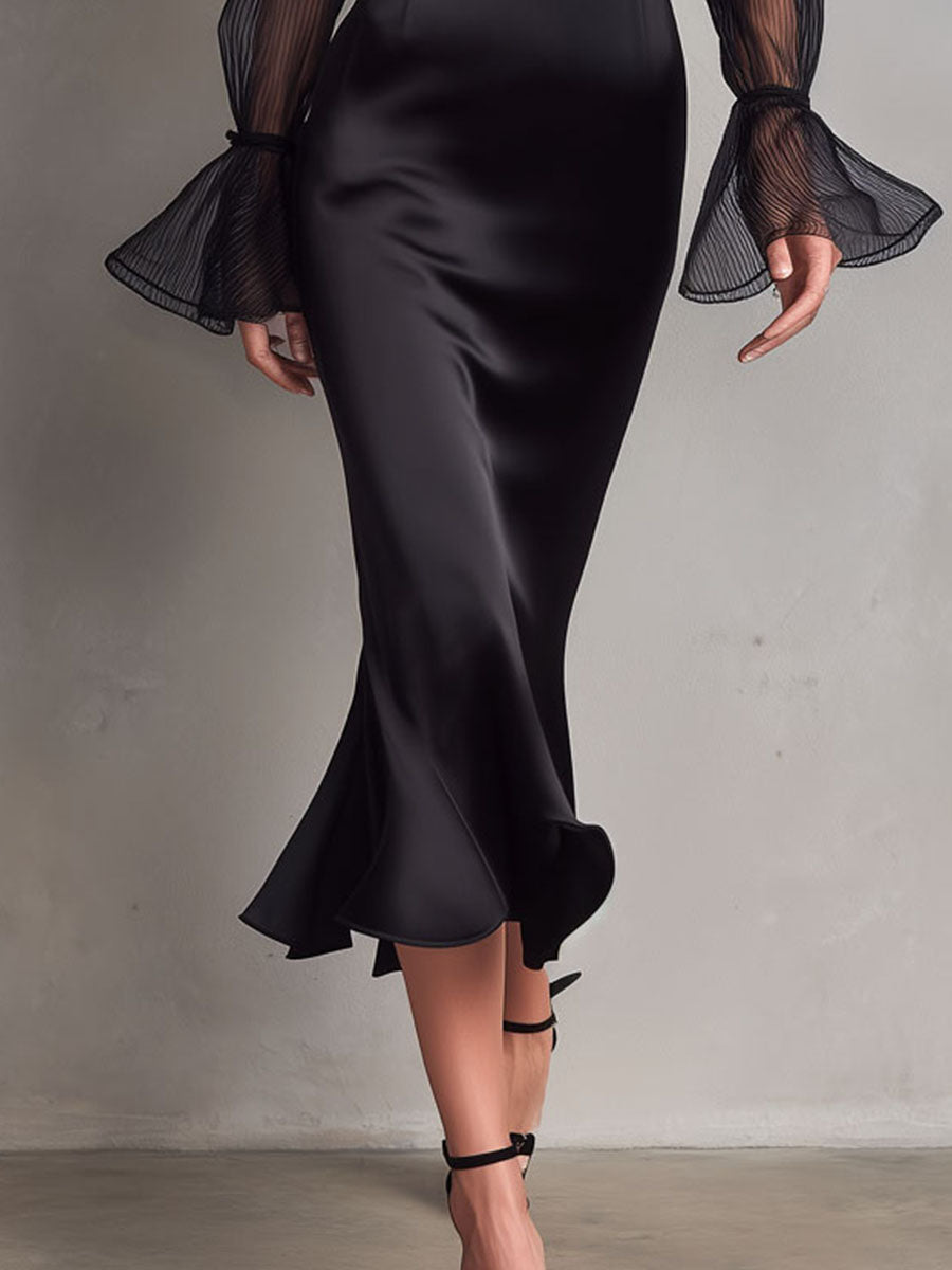 Agatha Black Satin Midi Dress – Graceful, Refined & Effortlessly Chic